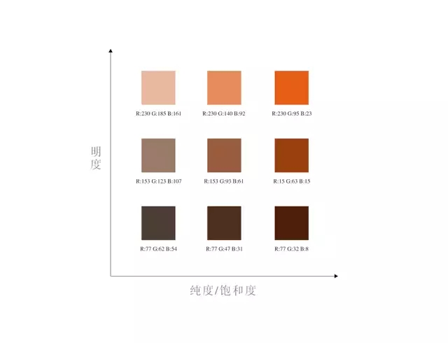 不同的橙色表現(xiàn)出不同的調(diào)性,黯淡的橙色其實(shí)已經(jīng)可以看作沉穩(wěn)的褐色,而明亮的鮮橙色又分外跳脫